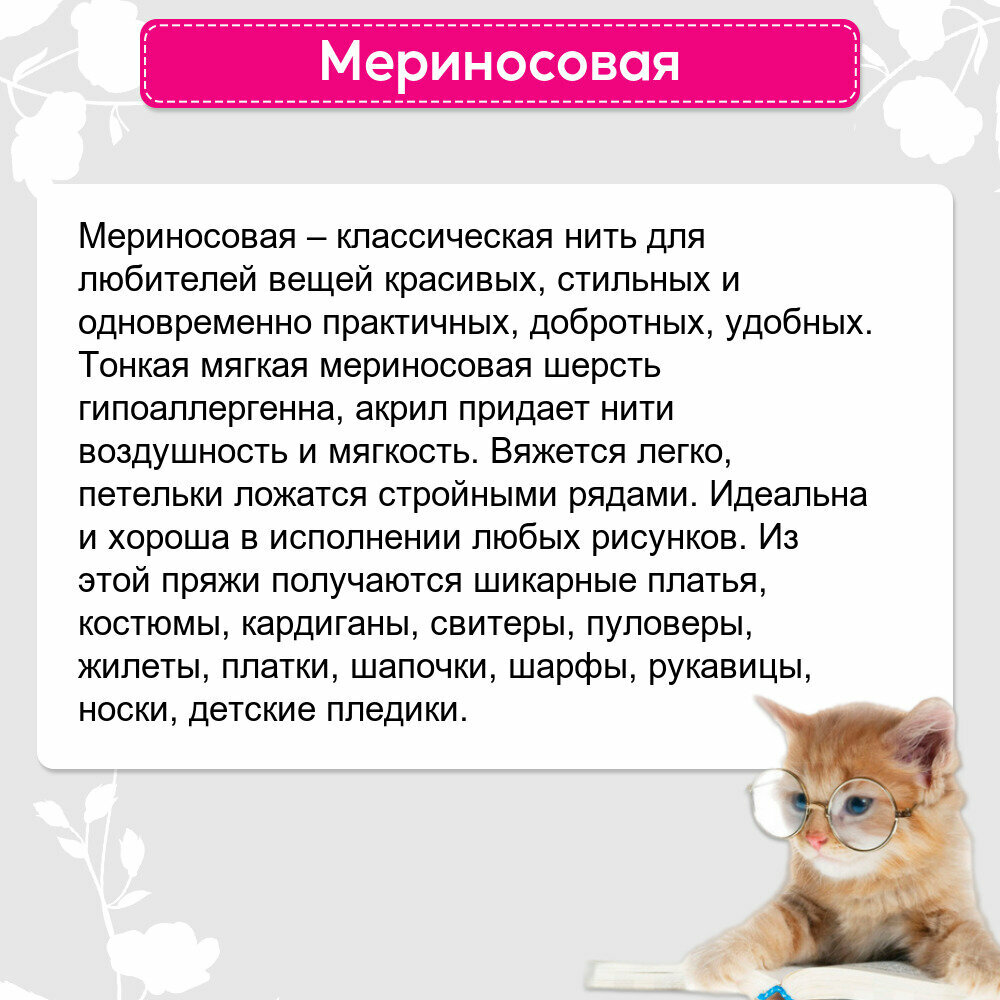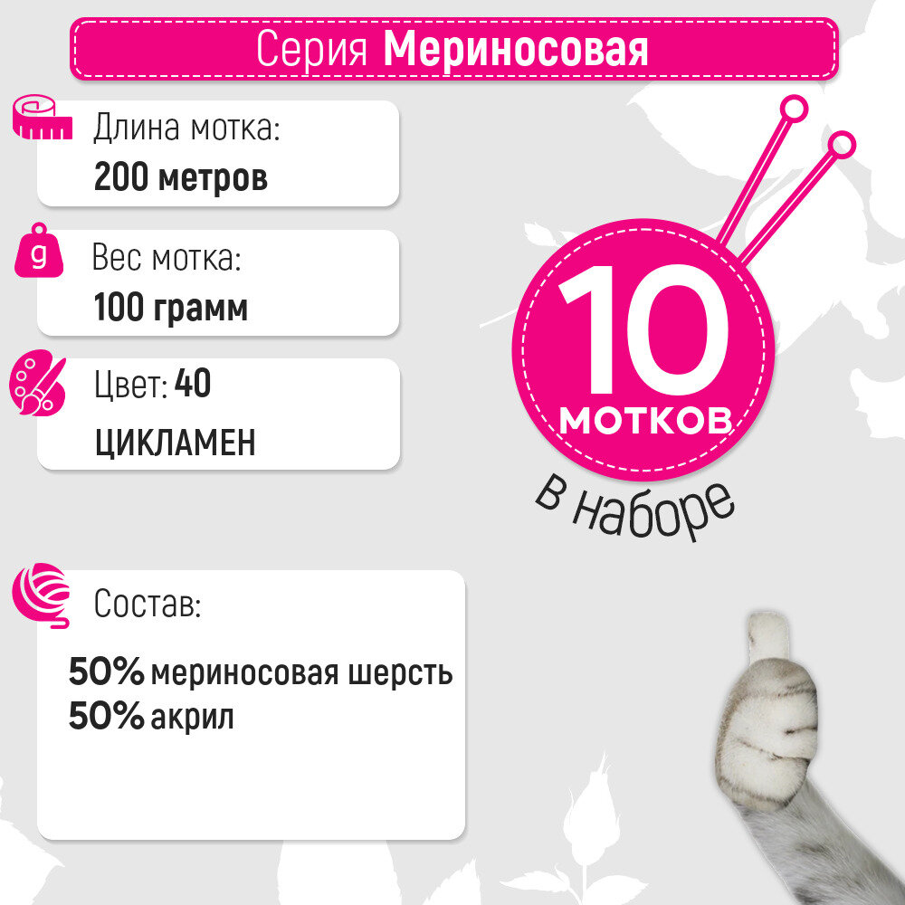 Ниже Вы можете прочитать отзывы на Пряжа для вязания Пехорка 'Мериносовая', 100г, 200м (50% шерсть, 50% акрил) (40 цикламен), 10 мотков, ознакомится с подробными характеристиками, посмотреть интересные обзоры и фотографии на Пряжа для вязания Пехорка 'Мериносовая', 100г, 200м (50% шерсть, 50% акрил) (40 цикламен), 10 мотков.