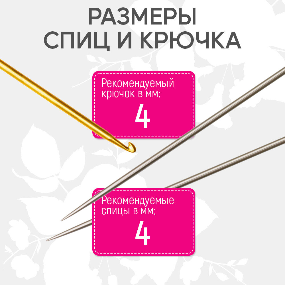 | Рекомендуемый размер спиц | 2 мм, 3 мм, 4 мм, 4.25 мм, 4.5 мм, 5 мм, 5.5 мм, 6 мм |