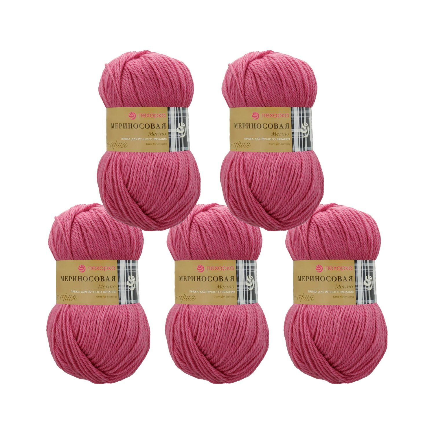 Пряжа Пехорка Мериносовая (384), яркая астра, 5 шт. по 100 г