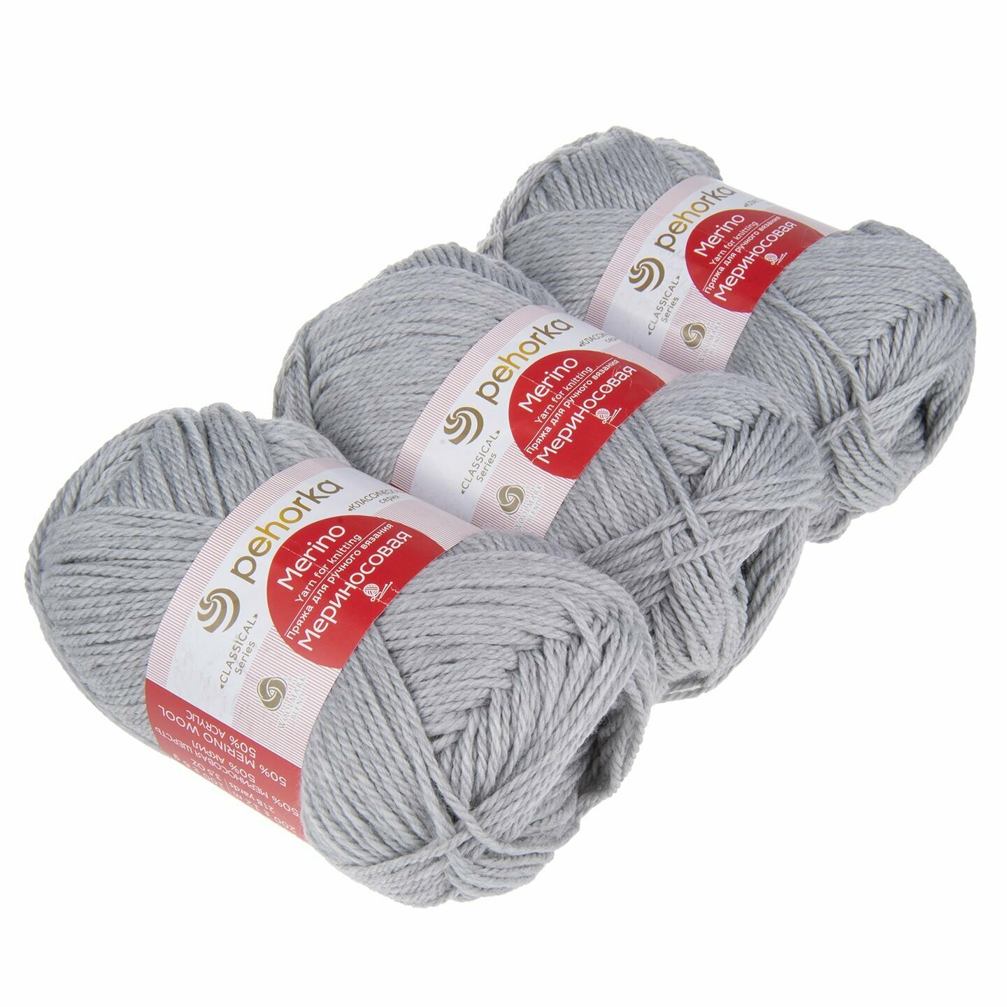 Купить Пряжа Пехорка Мериносовая светло-серый/меланж (386), 50%шерсть мериноса/50%акрил, 200м, 100г, 3шт