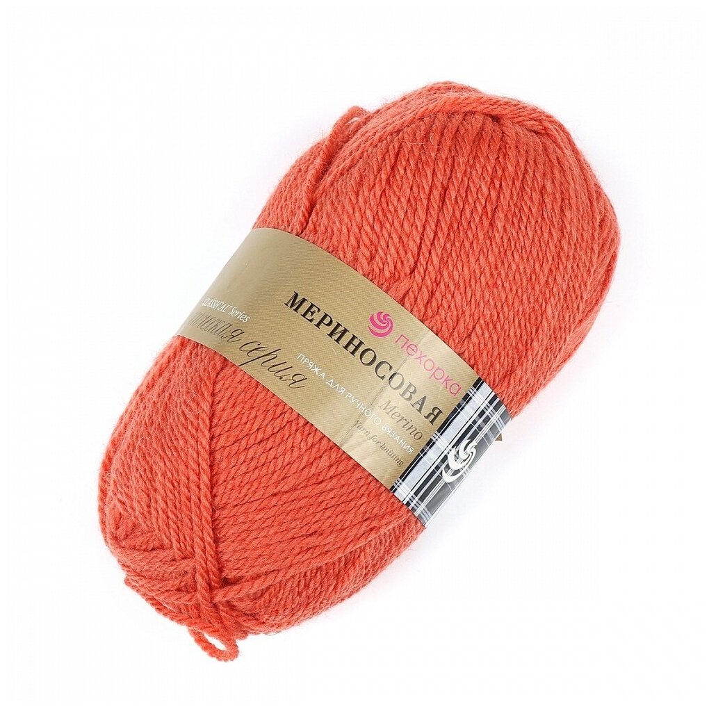 Пряжа Мериносовая (Пехорка), Оранжевый - 284, 50% мериносовая шерсть, 50% акрил, 10 мотков, 100 г., 200 м.