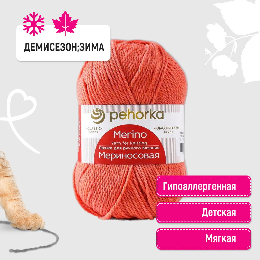 Пряжа Пехорка "Мериносовая" - 1 шт, цвет: 393-Светлый моренго, 200м/100г, 50% мериносовая шерсть, 50% акрил