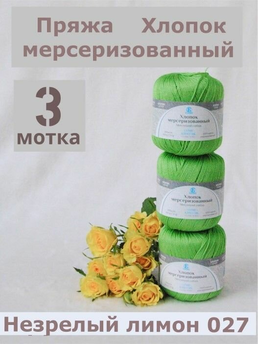 Пряжа Камтекс Хлопок мерсеризованный незрелый лимон (027), 100%мерсеризованный хлопок, 200м, 50г, 1шт