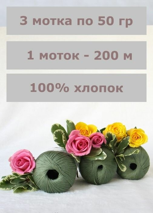 Купить Пряжа Хлопок мерсеризованный от Камтекс, цвет Хаки 294, 3 шт*50 г/200 м