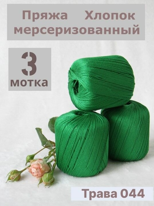 Купить Пряжа Хлопок мерсеризованный от Камтекс, цвет Трава 044, 3 шт*50 г/200 м