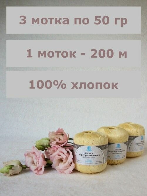 СохранитьПряжа Камтекс "Хлопок мерсеризованный", цвет: 031 - Шампанское, 3 шт., хлопок 100%, 50 г. 200 м. интересное: