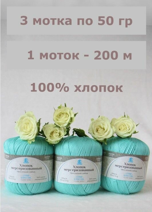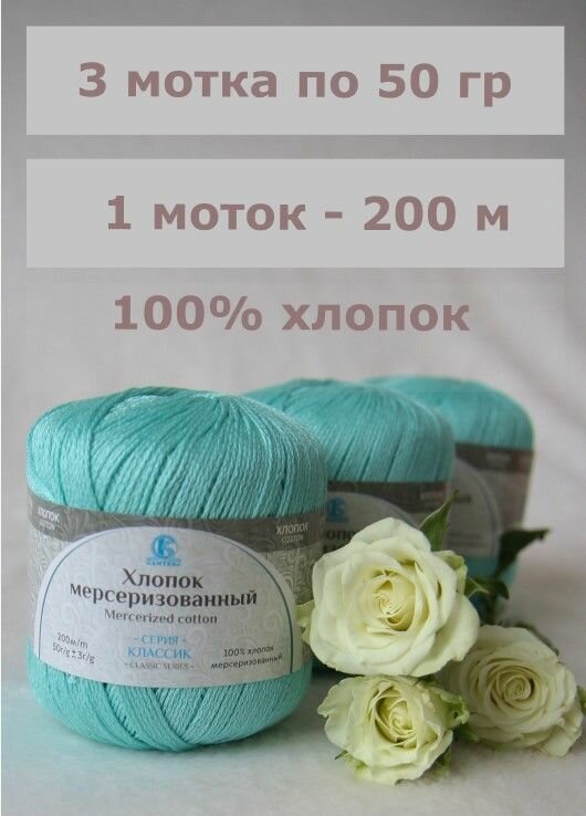 Купить Пряжа Хлопок мерсеризованный от Камтекс, цвет Бирюза 024, 3 шт*50 г/200 м