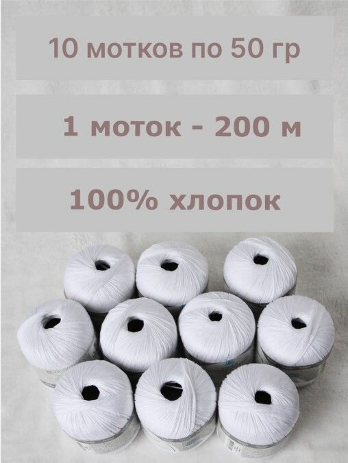 СохранитьПряжа для вязания Камтекс 'Хлопок мерсеризованный', 50г, 200м (100% хлопок) (002 отбелка), 10 мотков интересное: