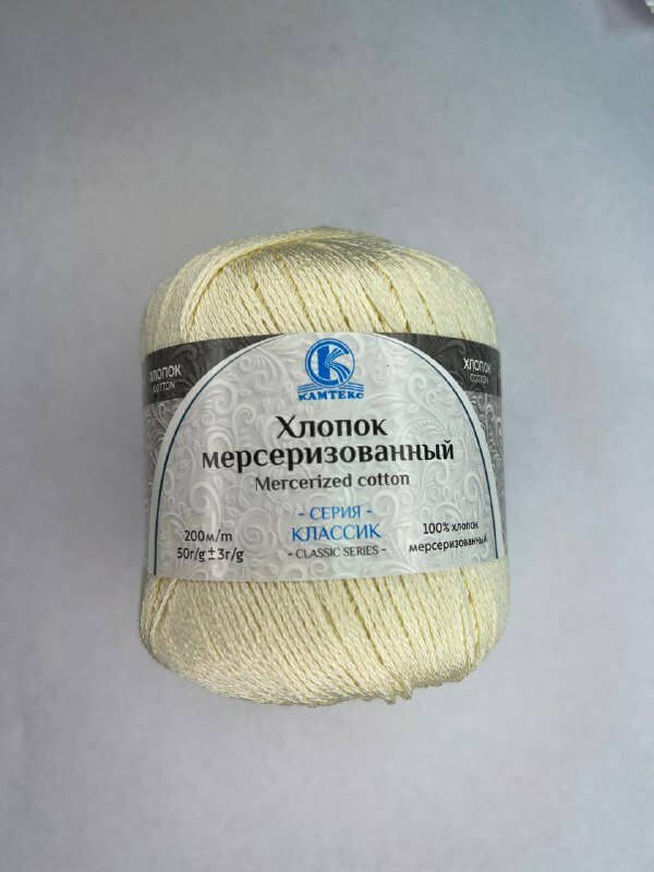 Пряжа Камтекс Хлопок мерсеризованный отбелка (002), 100%мерсеризованный хлопок, 200м, 50г, 1шт