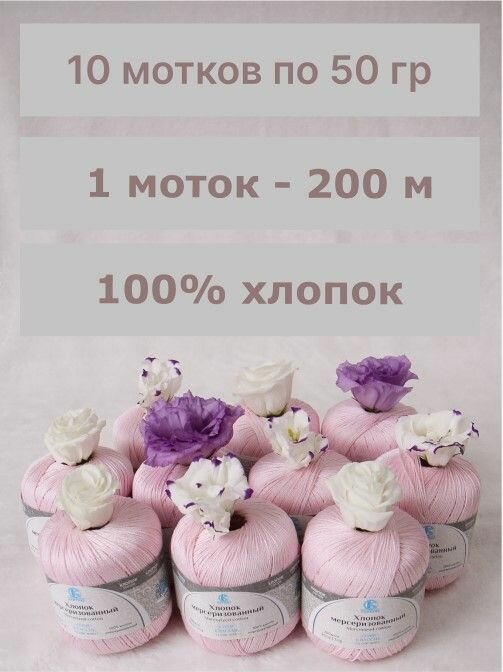 Пряжа для вязания Камтекс 'Хлопок мерсеризованный' 50г, 200м (100% хлопок) (067 пудра), 10 мотков