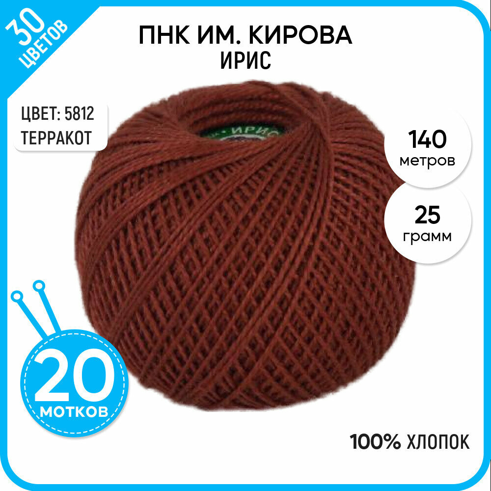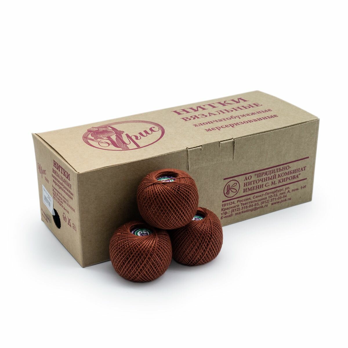 Нитки для вязания крючком ПНК им. Кирова 'ирис' (100% хлопок) 25г, 150м (5710 коричневый), 20 мотков