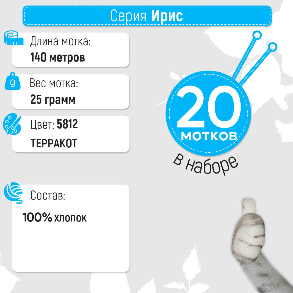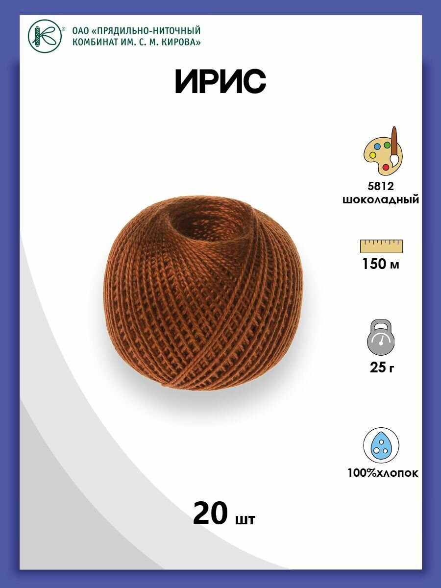 Нитки для вязания и плетения 'ирис' (100% хлопок), 25г, 150м (5812 шоколадный), 20 мотков