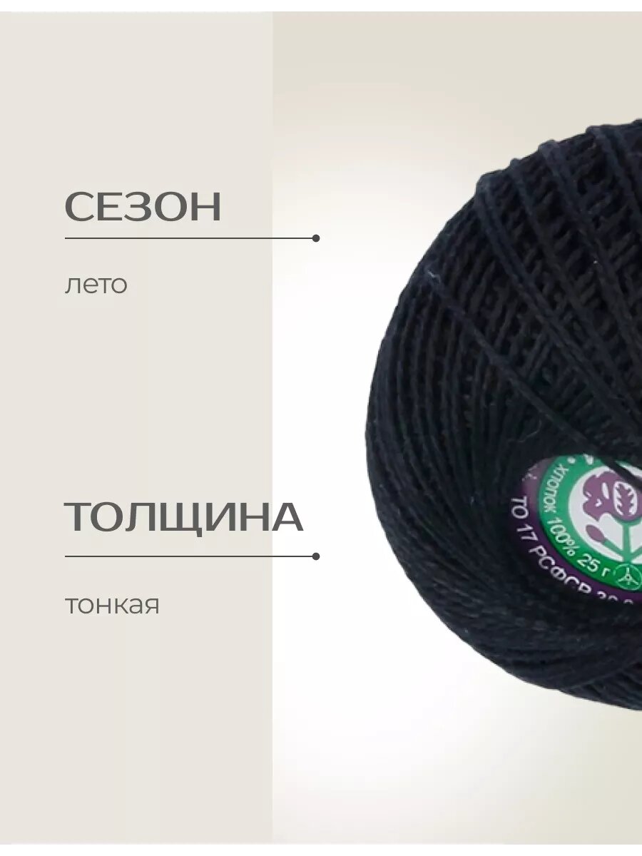 СохранитьПряжа ПНК им. С.М. Кирова Ирис набор 6 шт, черный - 7214, 100% мерсеризованный хлопок, 6 мотков, 25 г., 150 м. интересное: