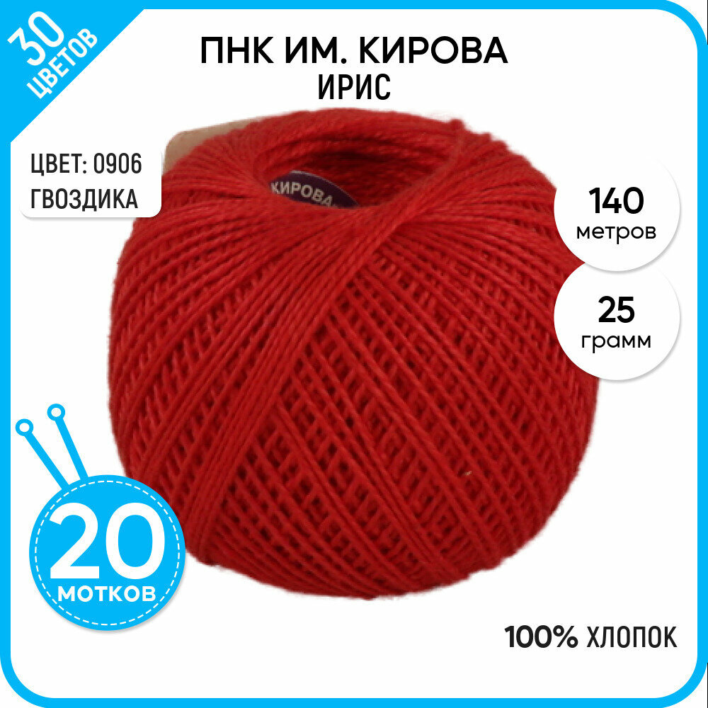 Пряжа ПНК Кирова Ирис красный мак (0906), 100%мерсеризованный хлопок, 150м, 25г, 1шт