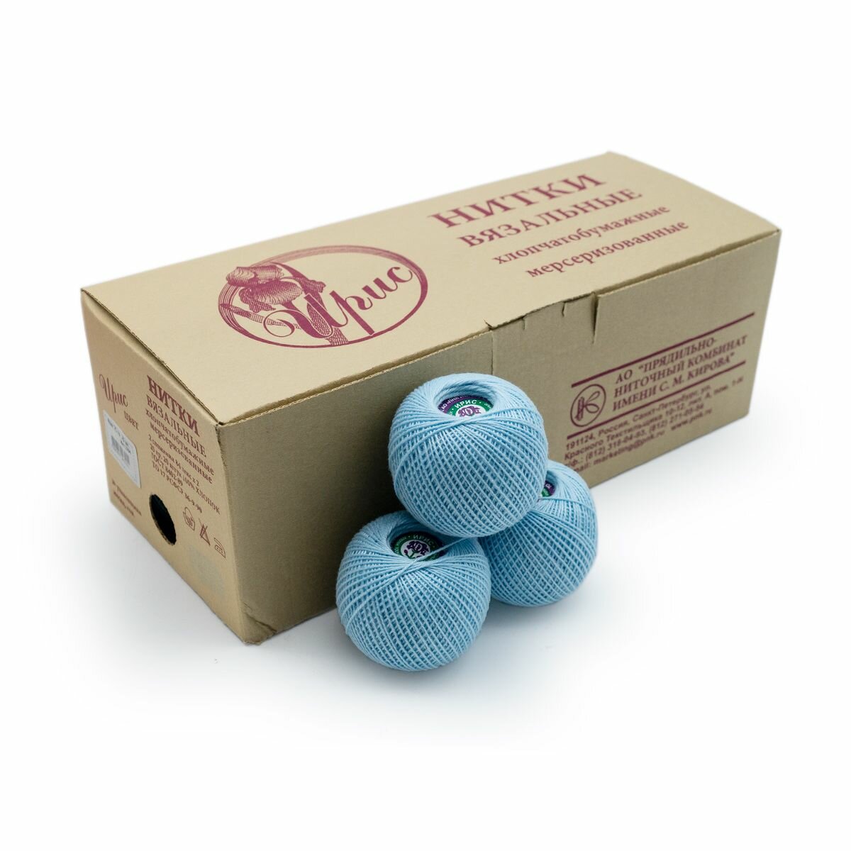 Нитки вязальные ПНК Кирова Ирис", 100% хлопок, 20 шт по 25 г, 150 м, цвет 2608, голубой (ирис.2608)