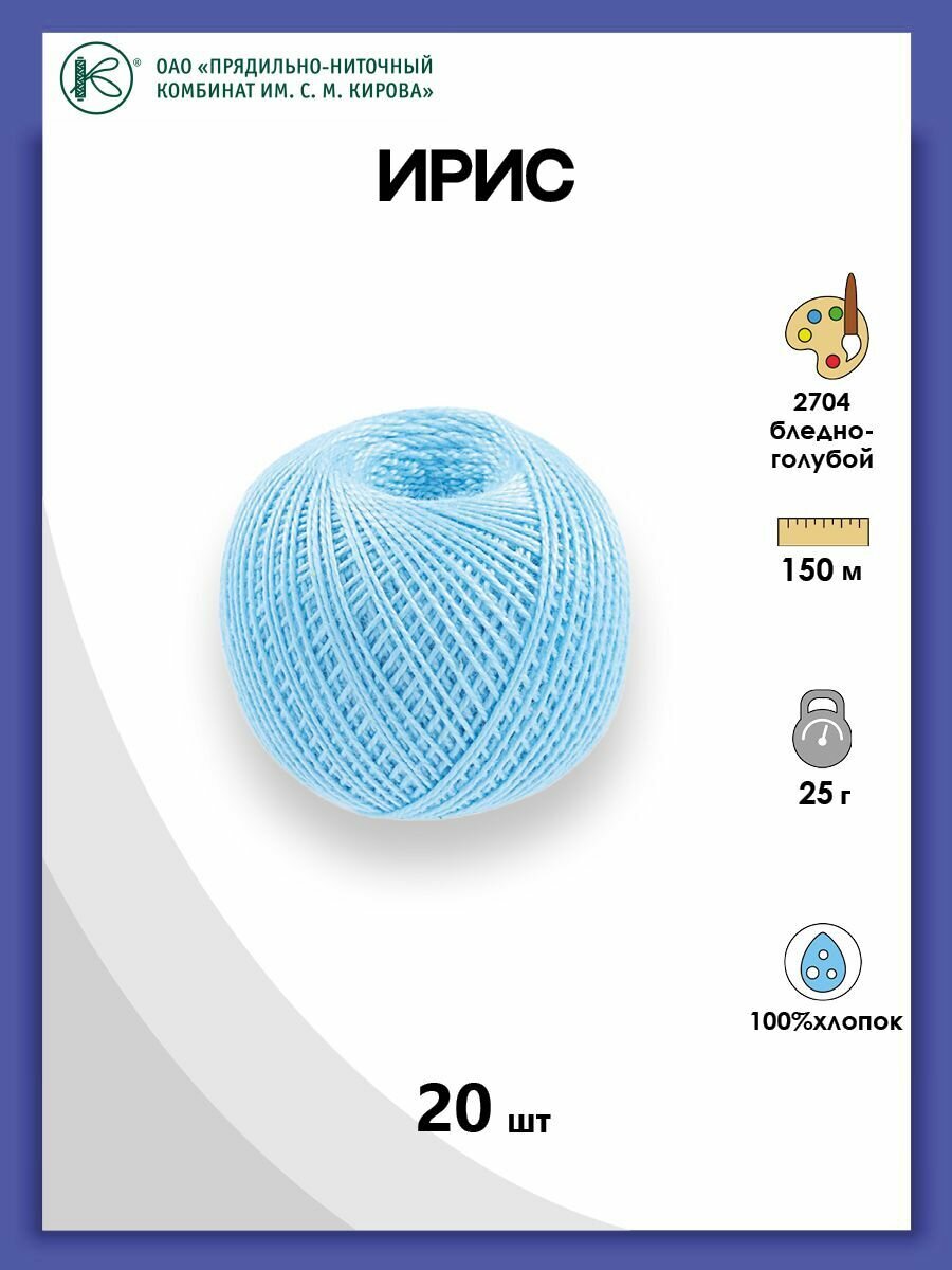 Нитки вязальные "Ирис" 25г., хлопчатобумажные, цвет: 2704 св.голубой, 150м., 1 шт