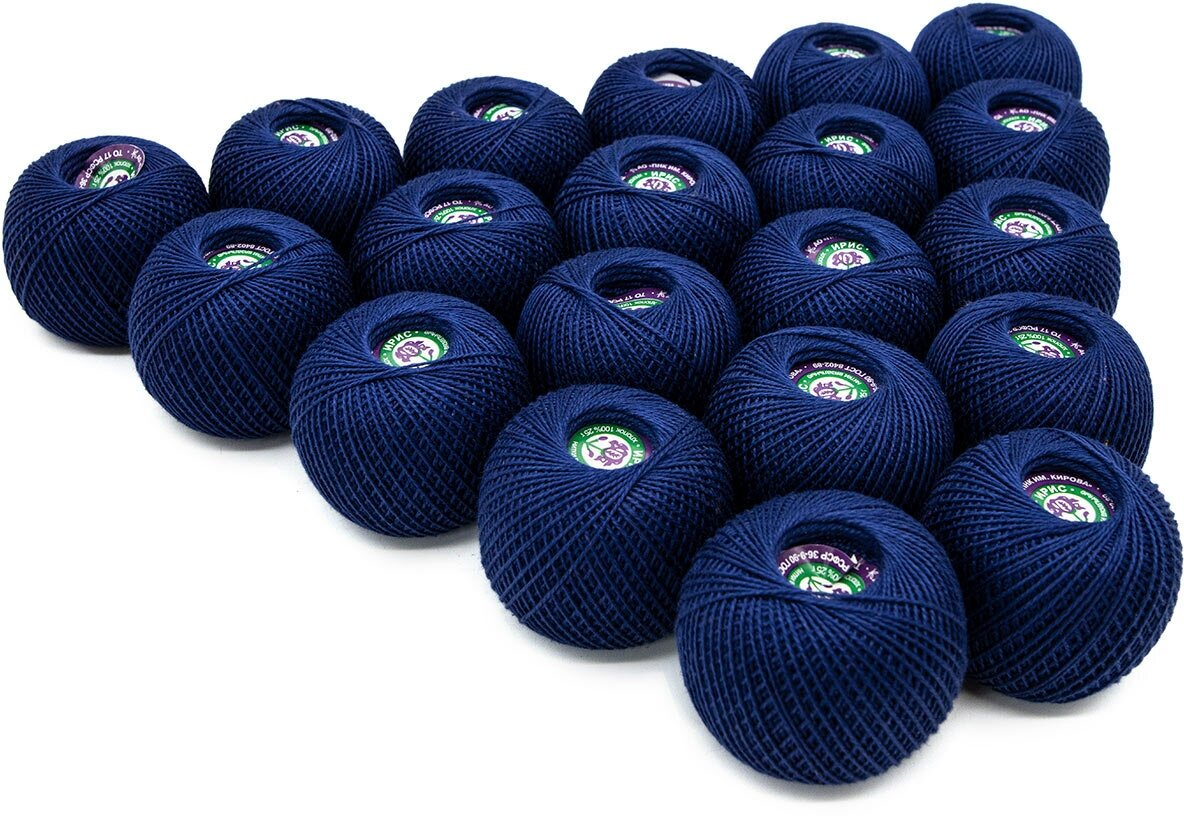 Нитки для вязания и плетения 'ирис' (100% хлопок), 25г, 150м (2614 темно-синий), 20 мотков