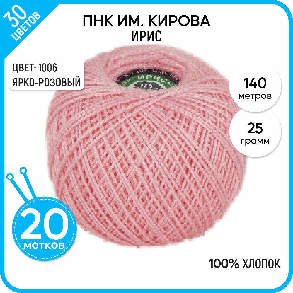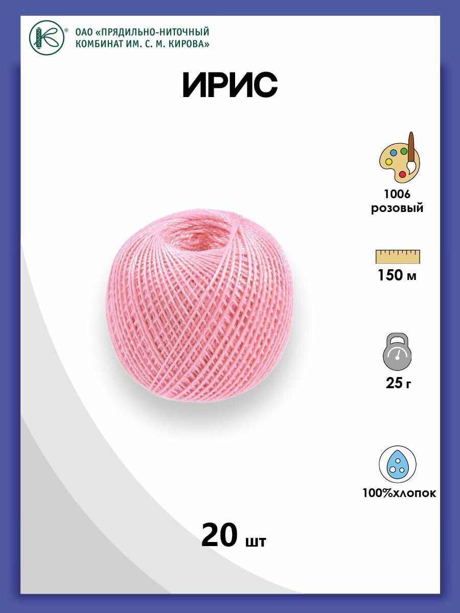 Купить Нитки для вязания и плетения 'ирис' (100% хлопок), 25г, 150м (1006 розовый), 20 мотков