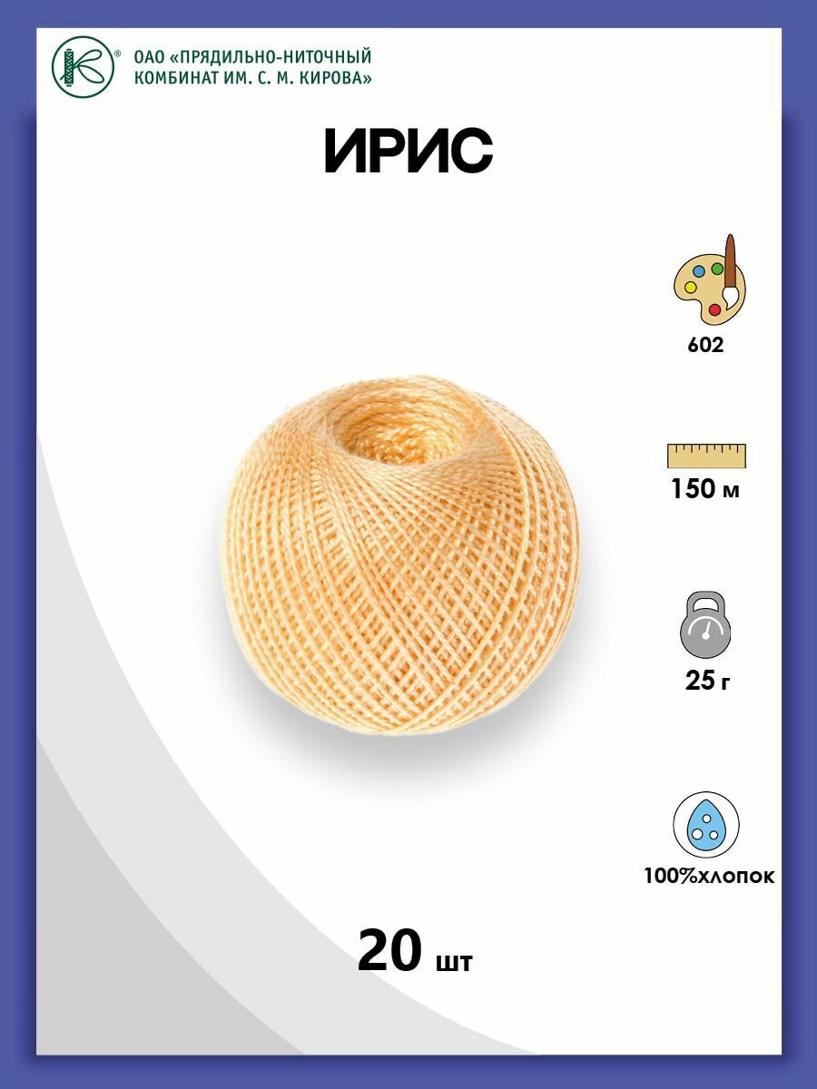 Нитки для вязания крючком ПНК им. Кирова 'ирис' (100% хлопок) 25г, 150м (1602 абрикосовый), 20 мотков