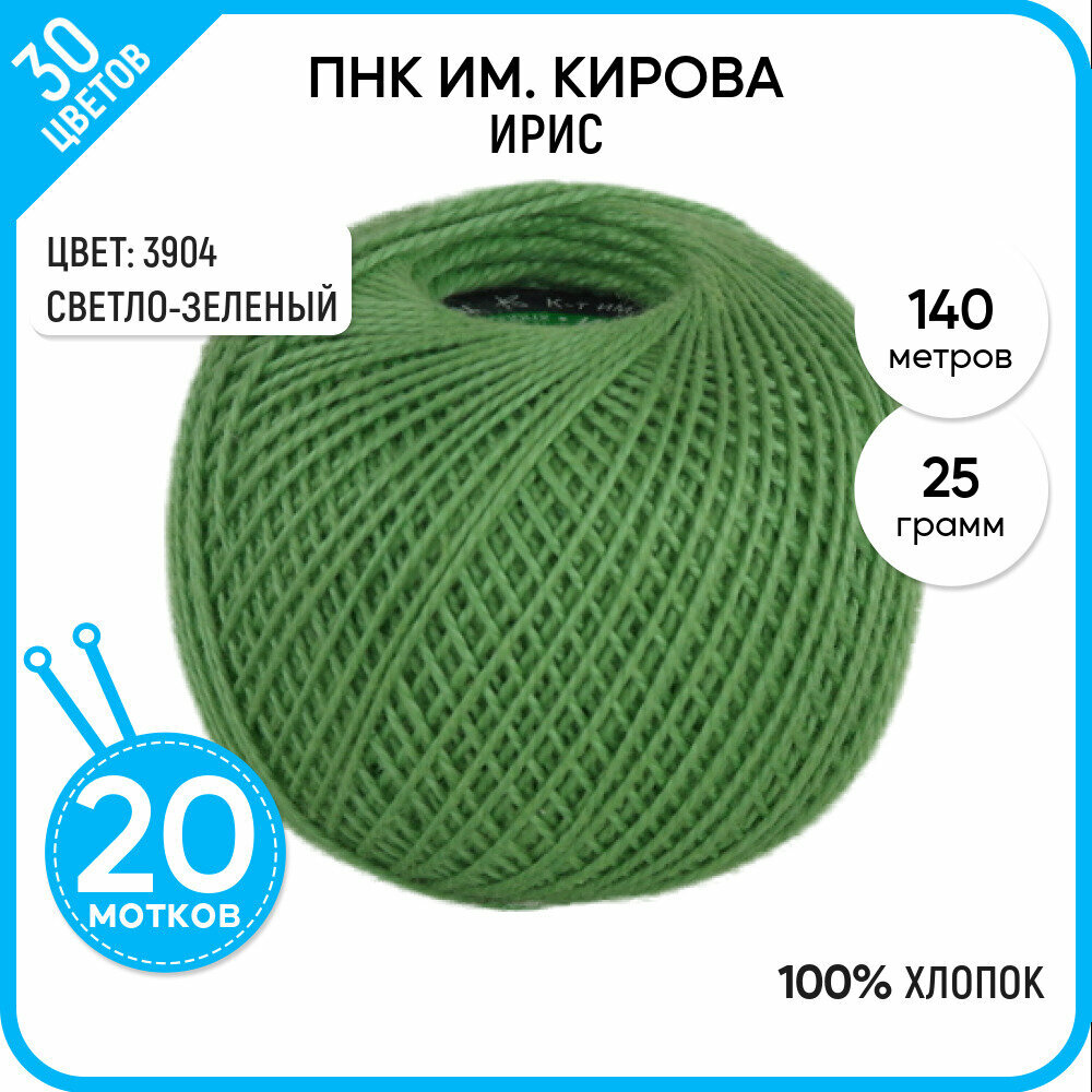 Нитки вязальные ПНК Кирова Ирис", 100% хлопок, 20 шт по 25 г, 150 м, цвет 4306, зеленый (ирис.4306)