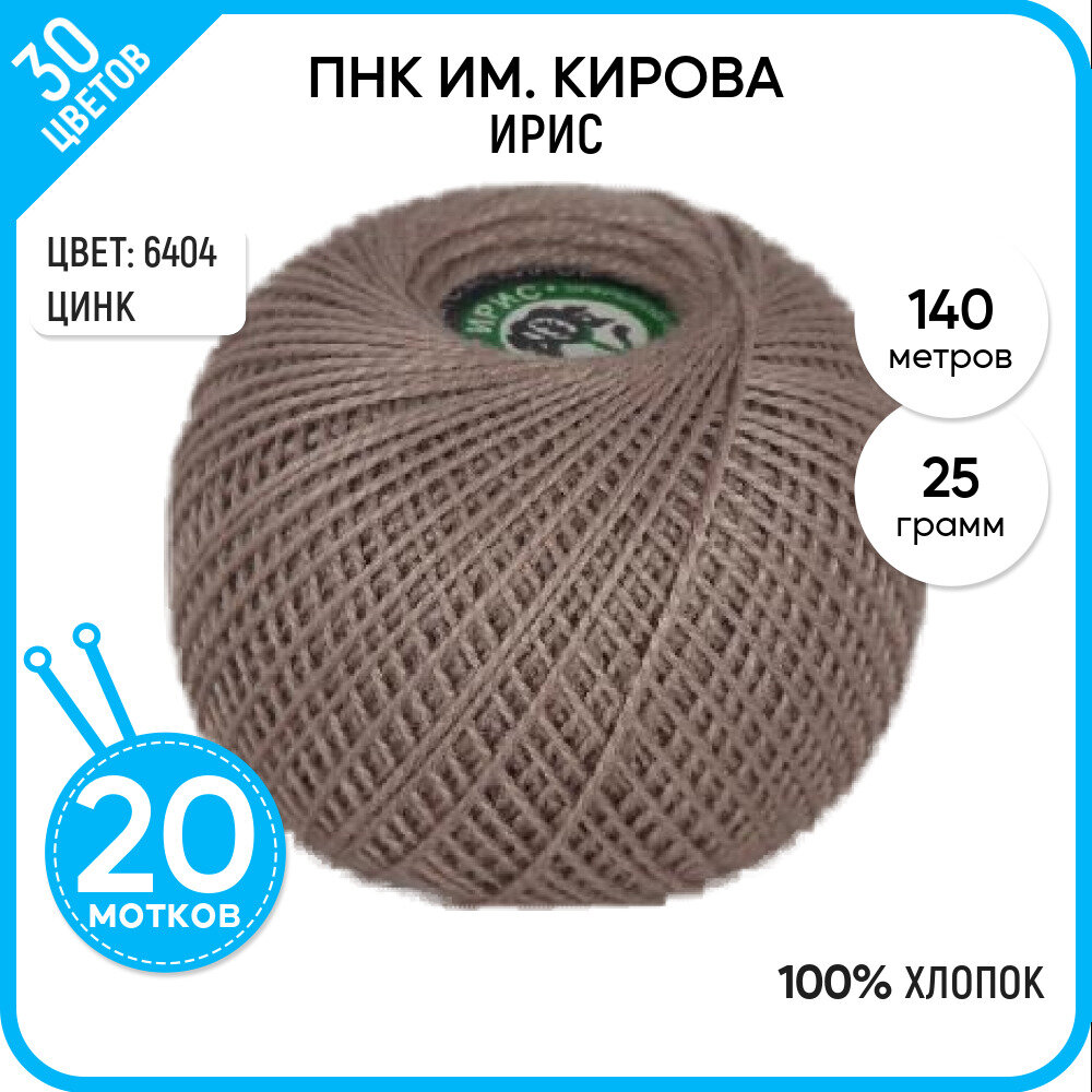 Нитки для вязания крючком ПНК им. Кирова 'ирис' (100% хлопок) 25г, 150м (6404 какао), 20 мотков