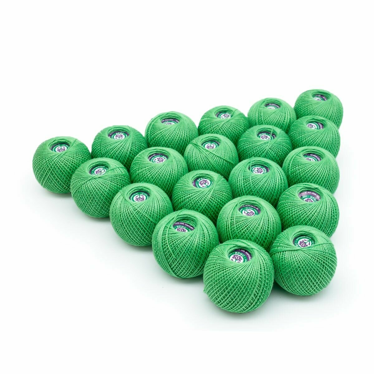 Нитки для вязания крючком ПНК им. Кирова 'ирис' (100% хлопок) 25г, 150м (4110 яркая зелень), 20 мотков