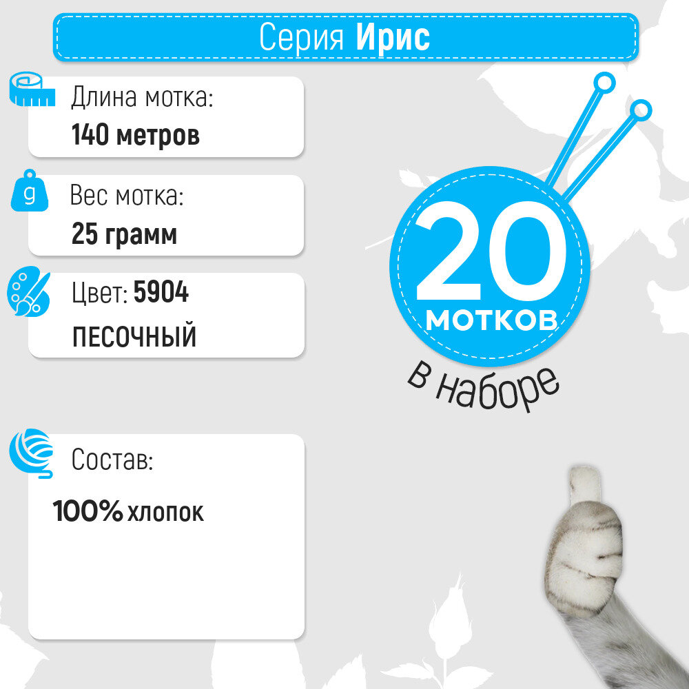 Купить Нитки для вязания и плетения 'ирис' (100% хлопок), 25г, 150м (5904 бежевый), 20 мотков