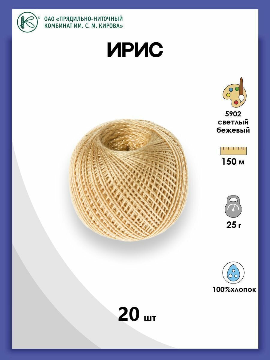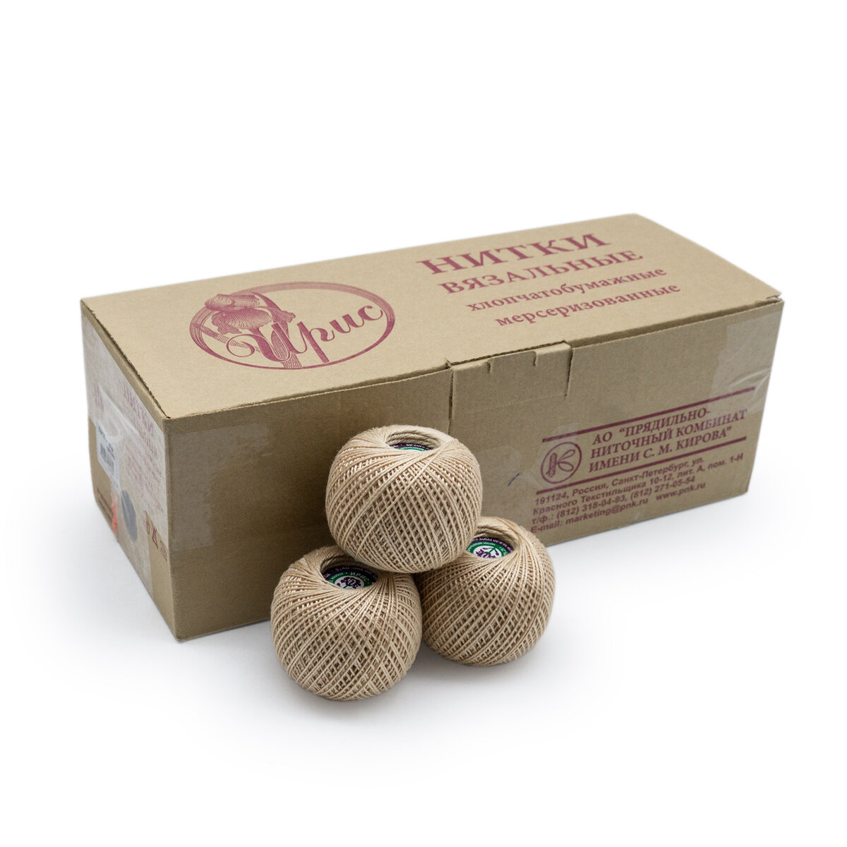 Нитки вязальные ПНК Кирова Ирис", 100% хлопок, 20 шт по 25 г, 150 м, цвет 5502, бежевый (ирис.5502)