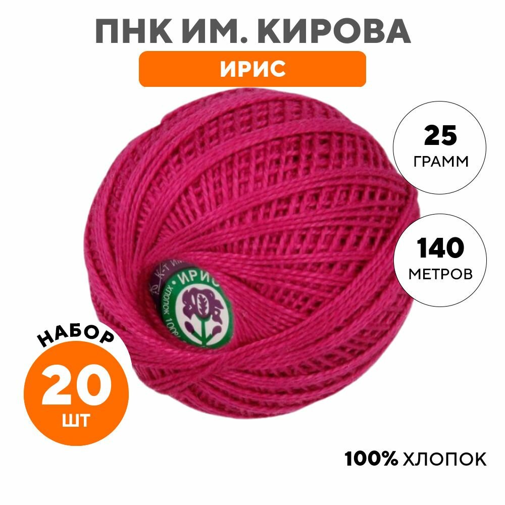 Нитки для вязания крючком ПНК им. Кирова 'ирис' (100% хлопок) 25г, 150м (1110 мальва), 20 мотков