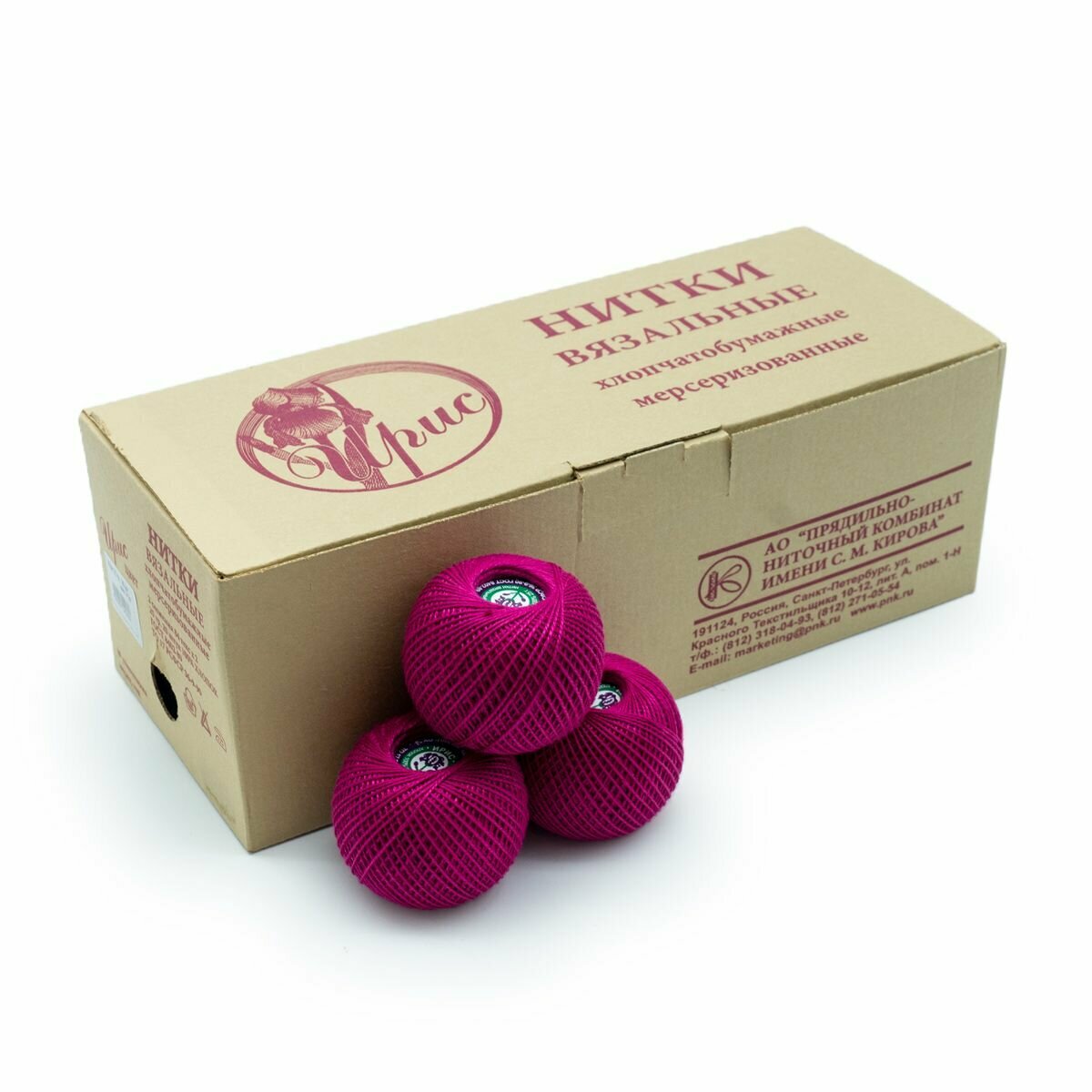 Пряжа ПНК Кирова Ирис темно-малиновый (1410), 100%мерсеризованный хлопок, 150м, 25г, 2шт