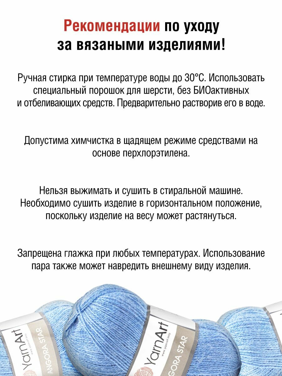 Пряжа для вязания YarnArt 'Angora Star', 100г, 500м (20% тонкая шерсть, 80% акрил) (3072 голубой джинс), 5 мотков