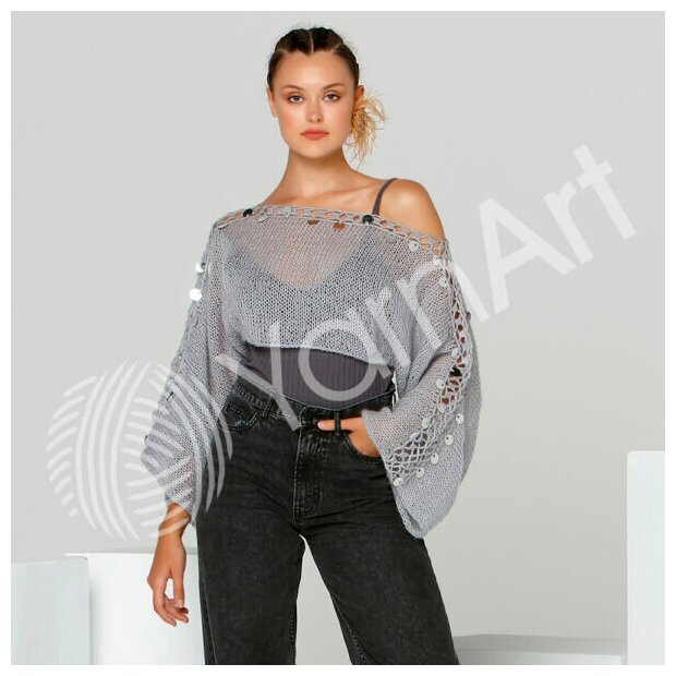 | Плотность вязания для образца 10х10 см | 24 ряда x 20 петель (спицы 4 мм); 18 рядов x 14 петель (крючок 5 мм) |