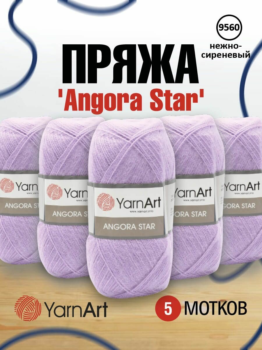 Купить Пряжа для вязания YarnArt 'Angora Star' 100гр 500м (20% тонкая шерсть, 80% акрил) (9560 нежно-сиреневый), 5 мотков
