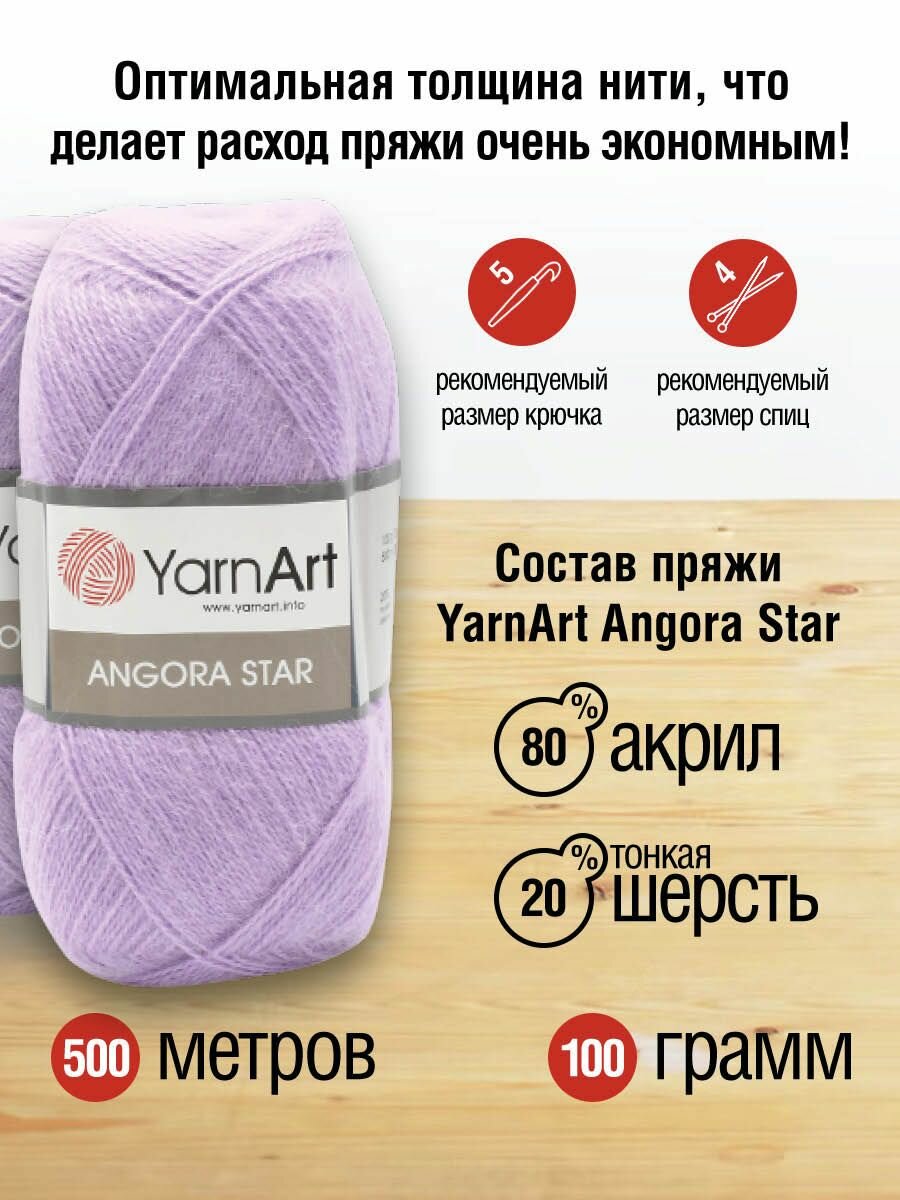 Пряжа для вязания YarnArt 'Angora Star' 100г, 500м (20% тонкая шерсть, 80% акрил) (9560 нежно-сиреневый), 5 мотков
