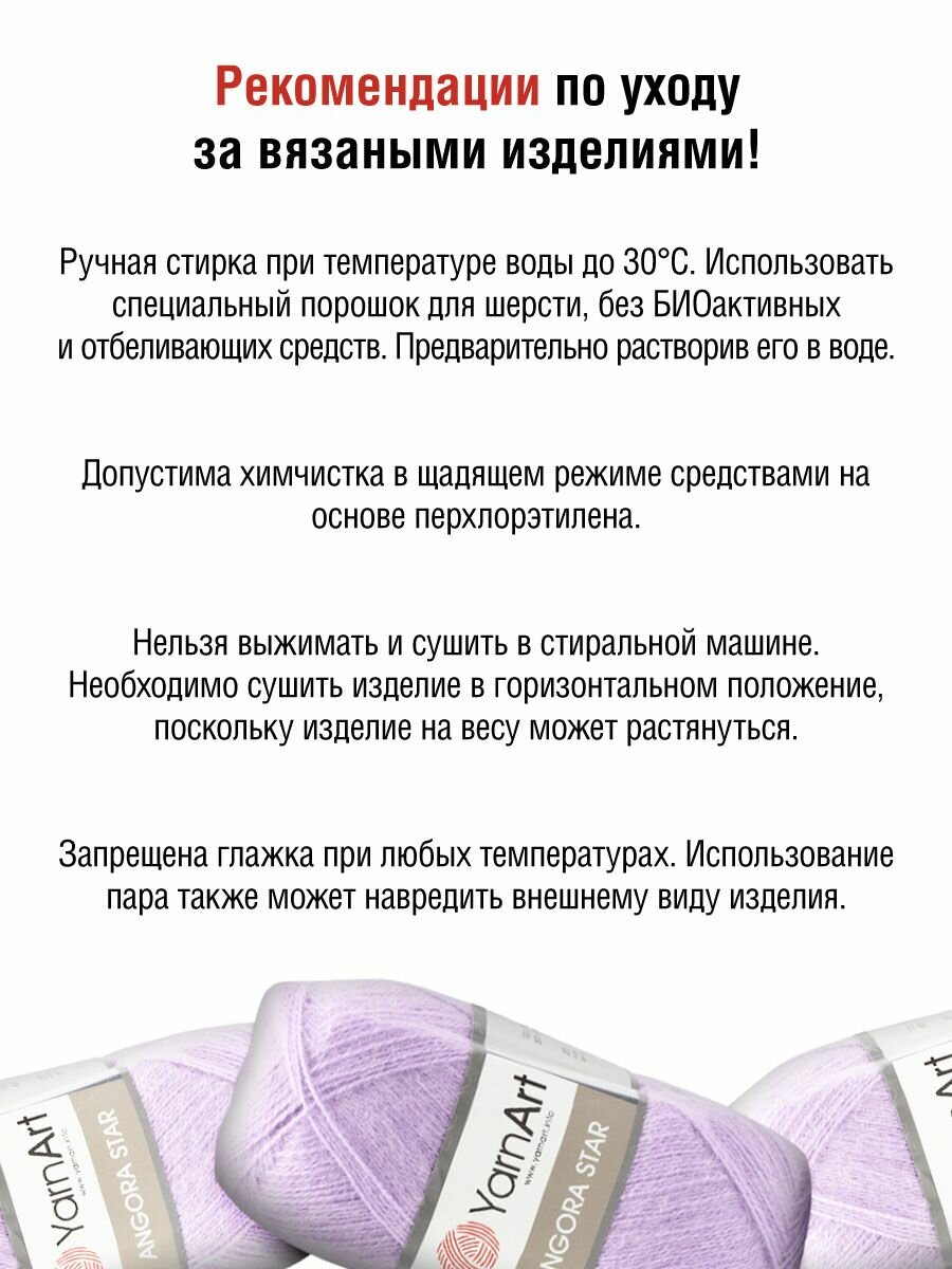 СохранитьПряжа для вязания YarnArt 'Angora Star' 100гр 500м (20% тонкая шерсть, 80% акрил) (9560 нежно-сиреневый), 5 мотков интересное: