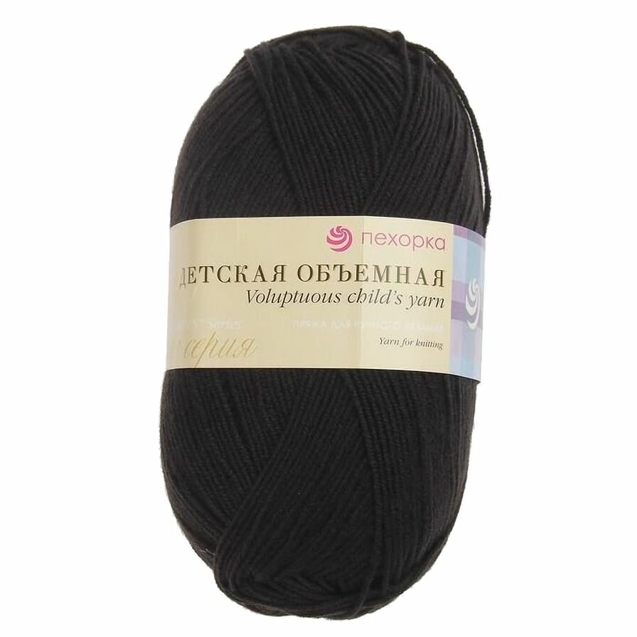 Пряжа для вязания Пехорка 'Детская объёмная', 100г, 400м (микрофибра 100%) (02-Черный), 5 мотков