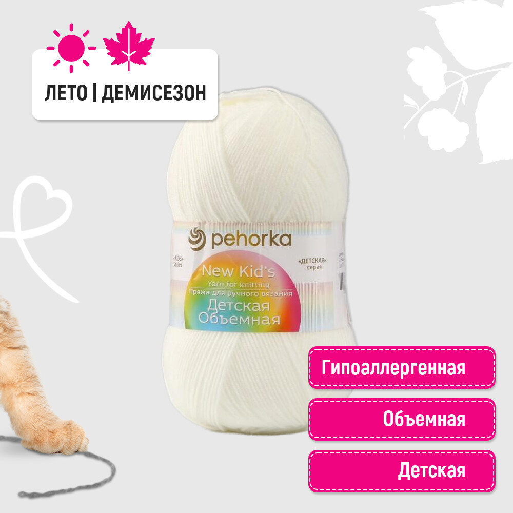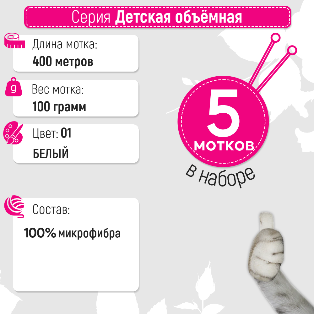 Пряжа для вязания Пехорка 'Детская объёмная', 100г, 400м (микрофибра 100%) (01-Белый), 5 мотков интересное: