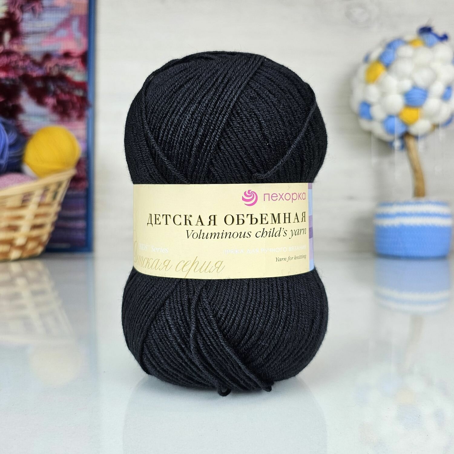 Пряжа для вязания Пехорка "Детская объёмная" для детей, 5 шт, Черный №02