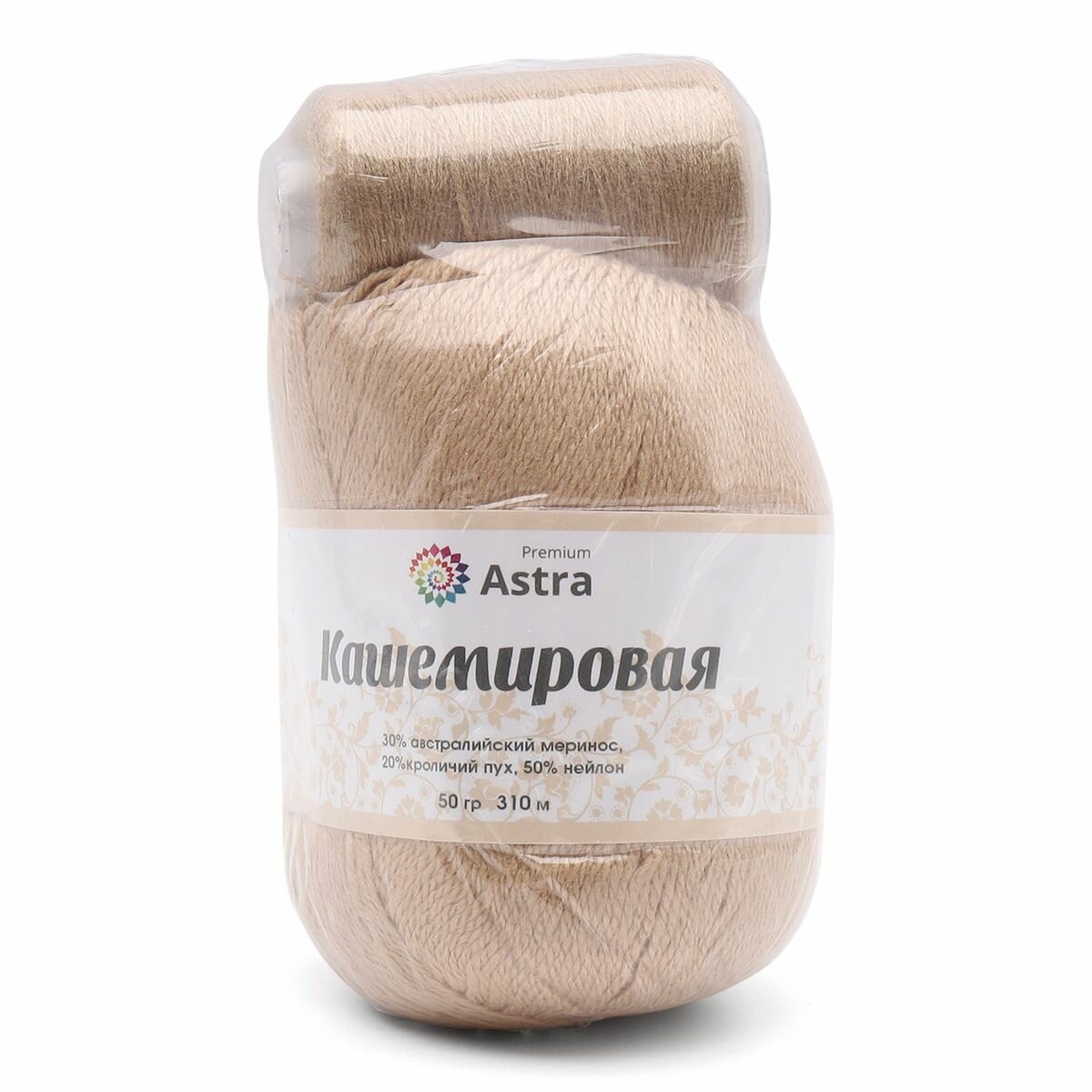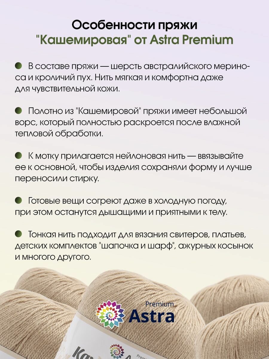 Пряжа для вязания Astra Premium 'Кашемировая' (Cashmere), 50г, 310м (20% кроличий пух, 30% австралийский меринос, 50% нейлон) + нить 20г (814 бежевый)