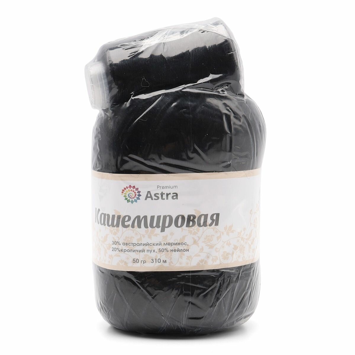 Пряжа для вязания Astra Premium 'Кашемировая' 50г, 310м +нить 20г (пух кролика, меринос, нейлон) (999 черный)