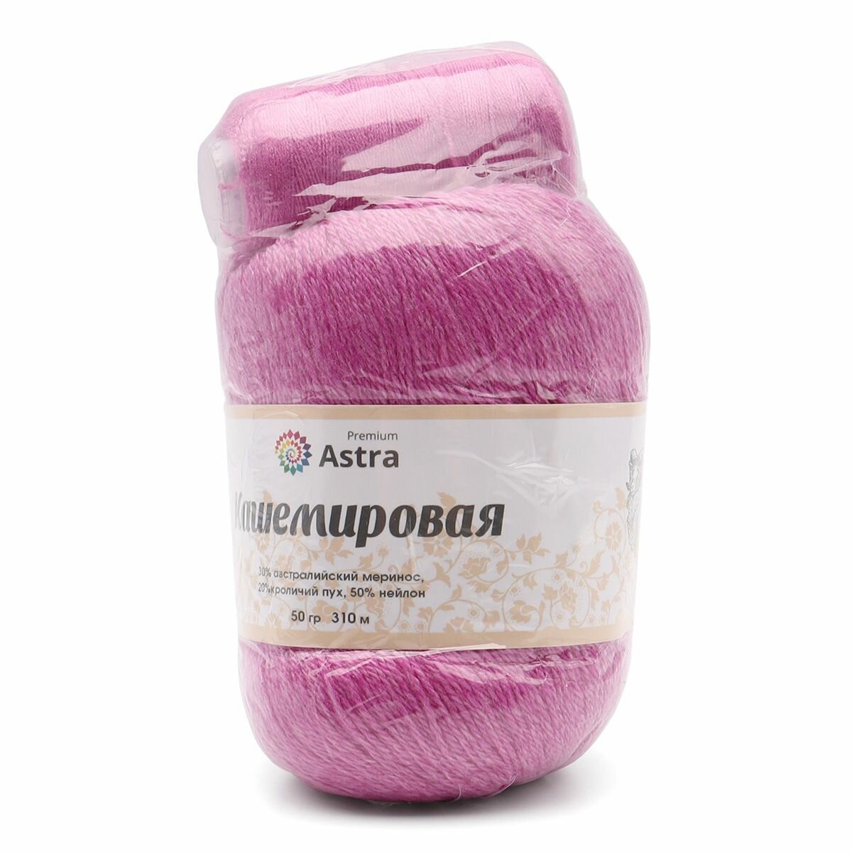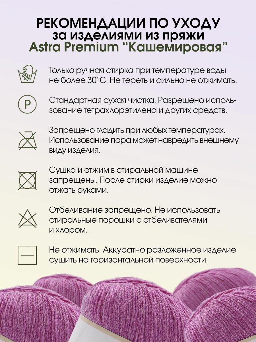 СохранитьПряжа для вязания Astra Premium 'Кашемировая' (Cashmere), 50г, 310м (20% кроличий пух, 30% австралийский меринос, 50% нейлон) + нить 20г (701 розово-фиолетовый) интересное: