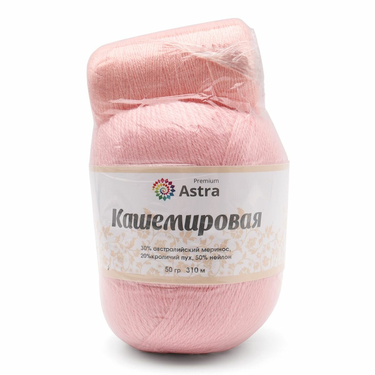 Купить Пряжа для вязания Astra Premium 'Кашемировая' (Cashmere), 50г, 310м (20% кроличий пух, 30% австралийский меринос, 50% нейлон) + нить 20г (114 светло-розовый)