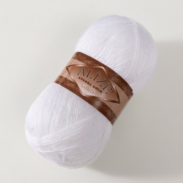 Пряжа для вязания Alize Angora Gold Simli, цвет 168 белая зима, моток 100г, 500м, 5шт/упак