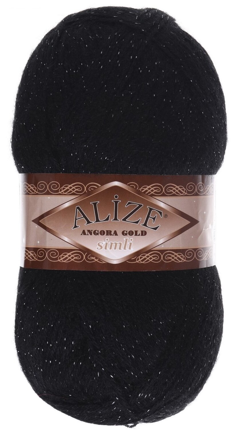 Пряжа ALIZE ANGORA GOLD SIMLI, черный - 60, 5% металлик, 20% шерсть, 75% акрил, 5 мотков, 100 г, 500 м.