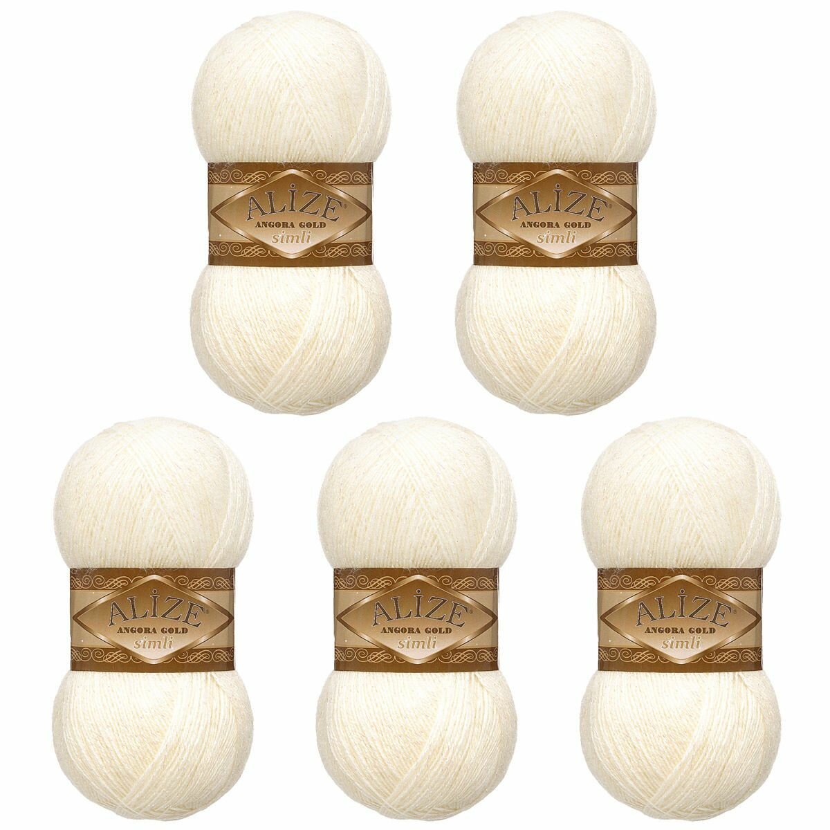 Пряжа для вязания ALIZE 'Angora Gold Simli', 100г, 500м (шерсть, металлик, акрил) (1 кремовый), 5 мотков