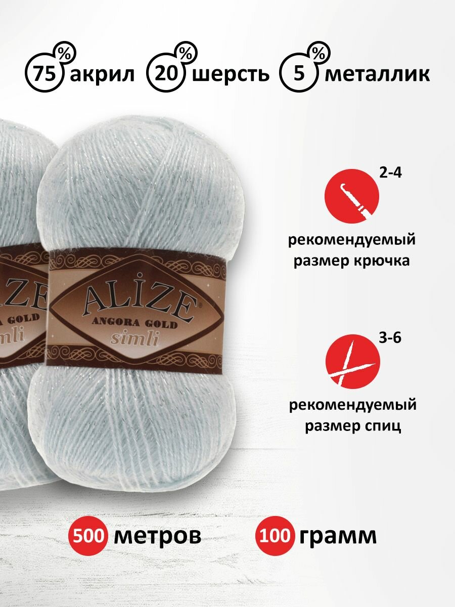 Пряжа для вязания Alize Angora Gold Simli, цвет 114 светло-голубой, моток 100г, 500м, 5шт/упак