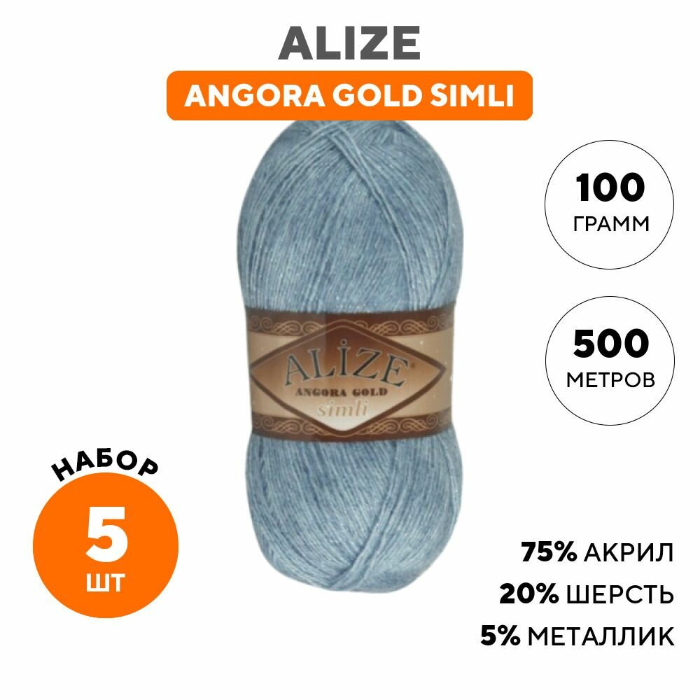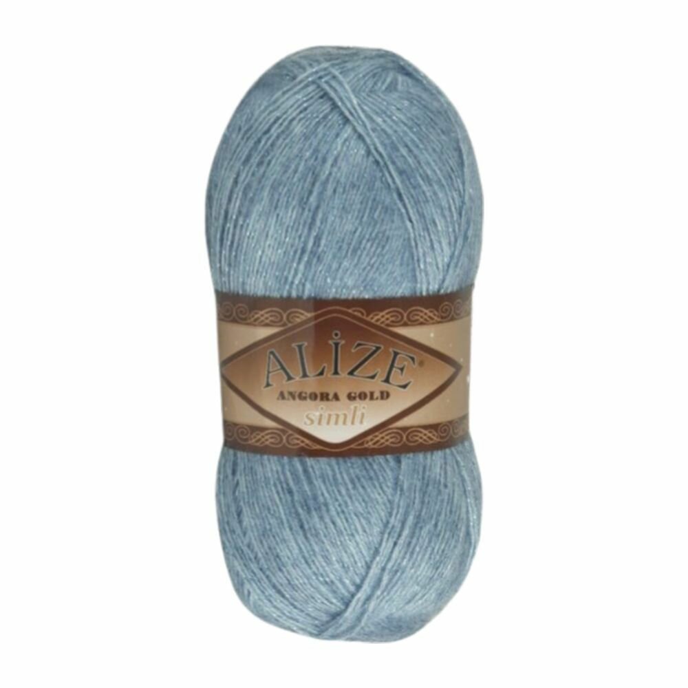 Пряжа ALIZE ANGORA GOLD SIMLI, светлый джинс - 221, 5% металлик, 20% шерсть, 75% акрил, 5 мотков, 100 г, 500 м.