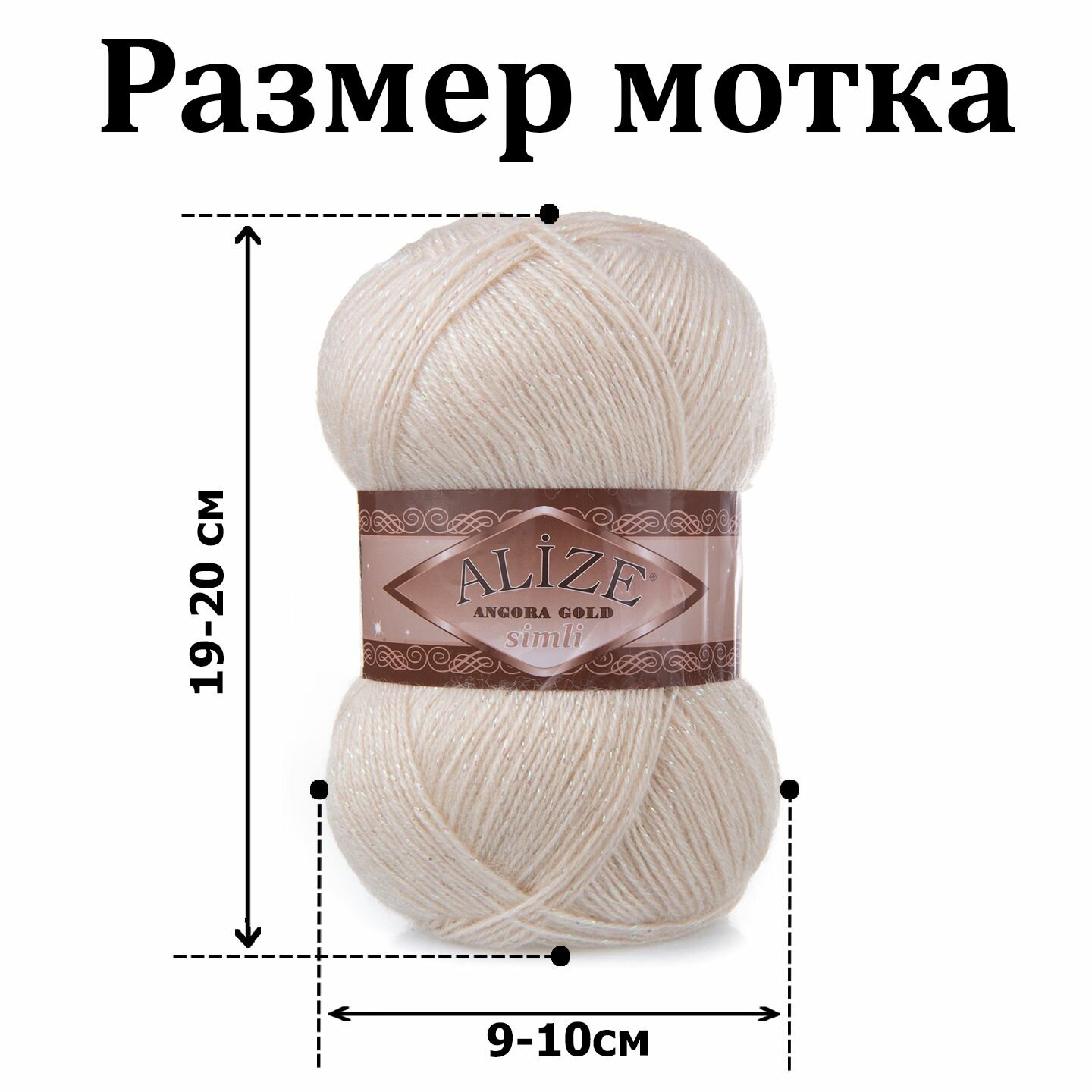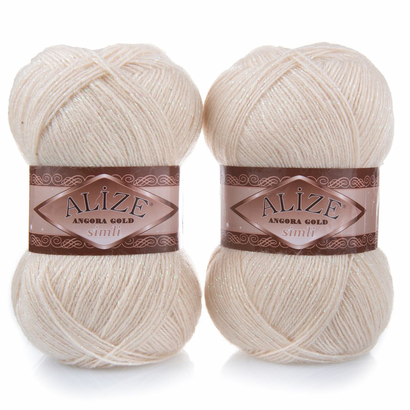 Пряжа для вязания ALIZE 'Angora Gold Simli', 100г, 500м (20% шерсть, 5% металлик, 75% акрил) (506 молочно-бежевый), 5 мотков