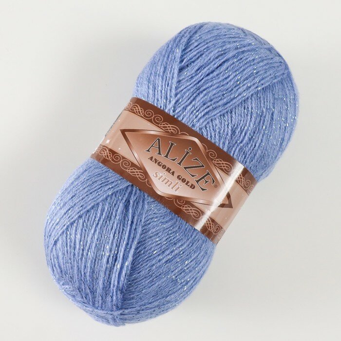 Пряжа ALIZE ANGORA GOLD SIMLI, светлый джинс - 221, 5% металлик, 20% шерсть, 75% акрил, 5 мотков, 100 г, 500 м.