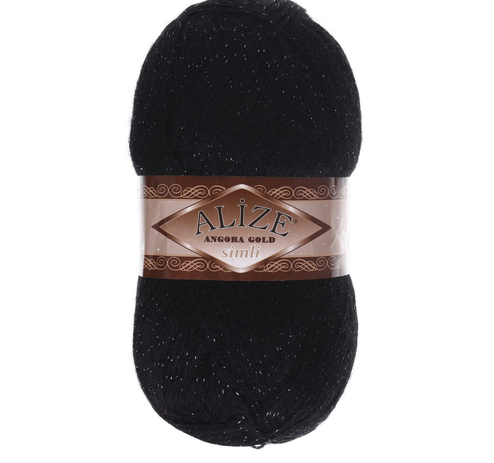 Пряжа Alize Angora Gold Simli (20% шерсть, 75% акрил, 5% металлик) 100 гр, 500 м, 60 черный , 1 моток